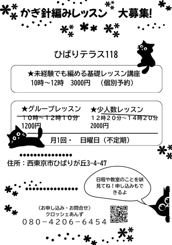 作品販売・かぎ針編み教室やワークショップを開催しています